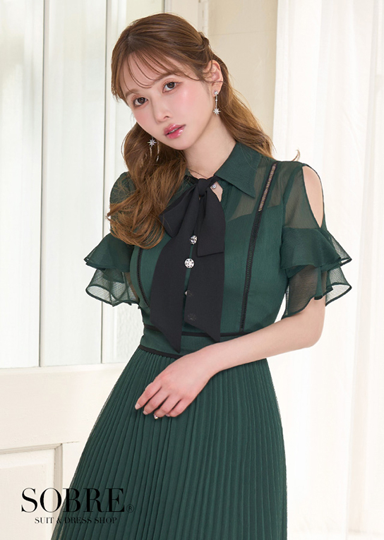 揺らめくフリルスリーブにスリット入りで気になる二の腕もカバー♪