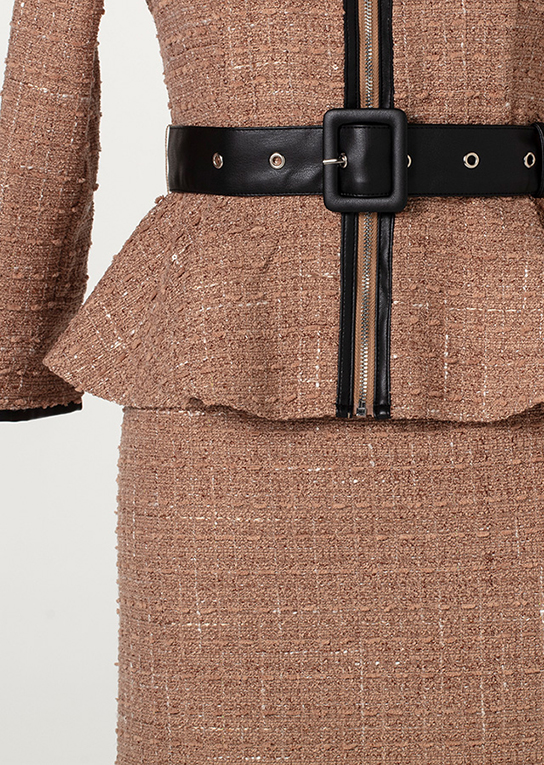 きゅっと引き締めてくれるフェイクレザーのベルト付き。