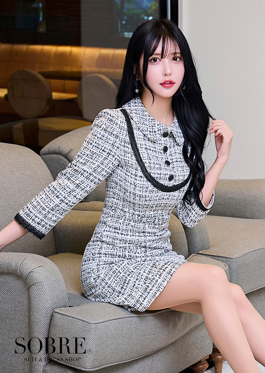 配色ブレードニットツイードワンピース