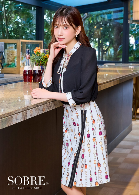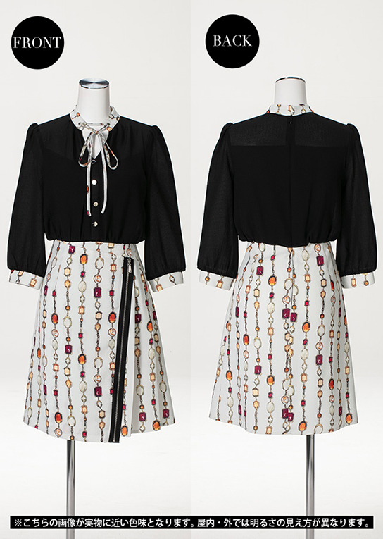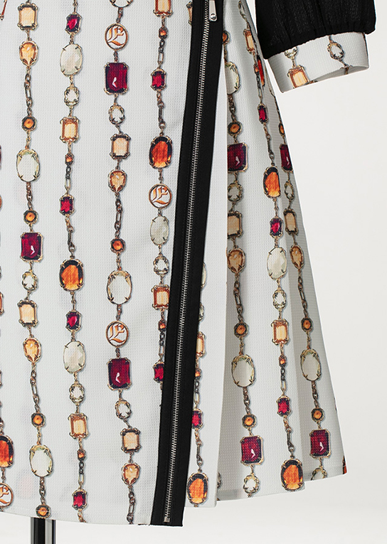 目を惹くジュエルプリントが魅力な華ワンピース。