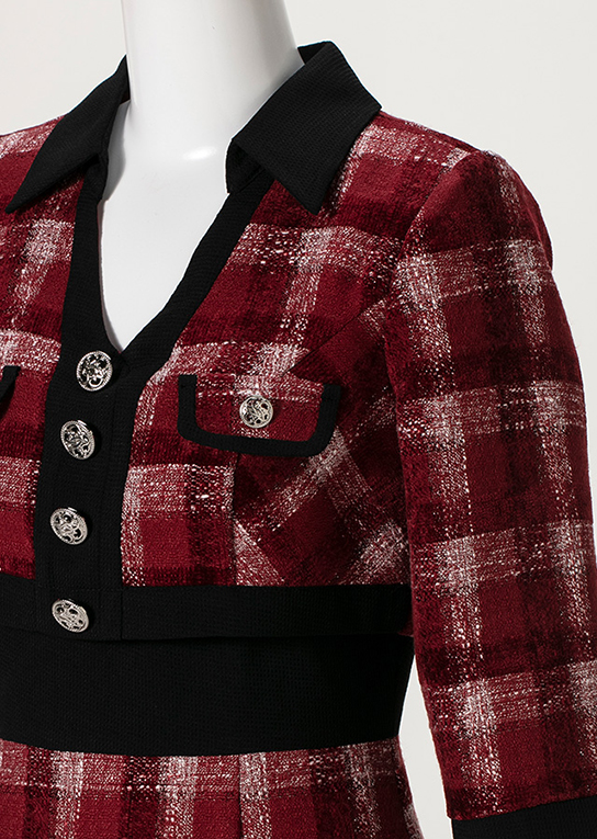 今季本命カラーのレッドが艶やかなレイヤードワンピース。