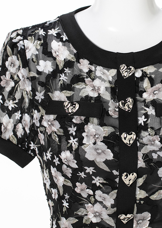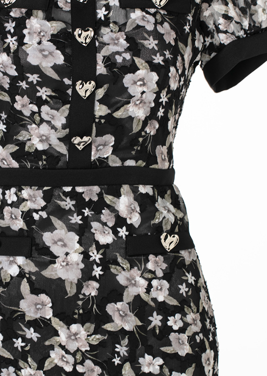 シンプルなデザインの中にハートボタンを合わせてフェミニンに。