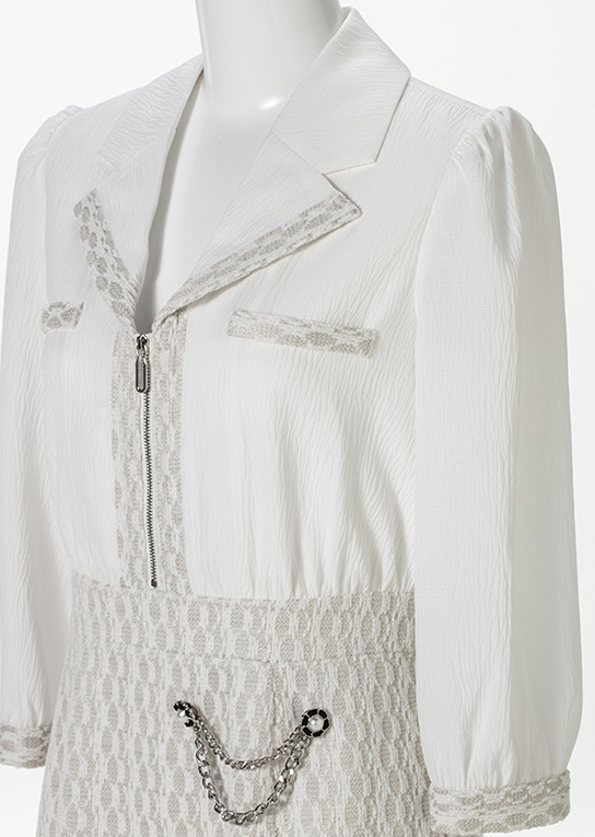 顔周りをすっきり見せてくれるオープンカラー。