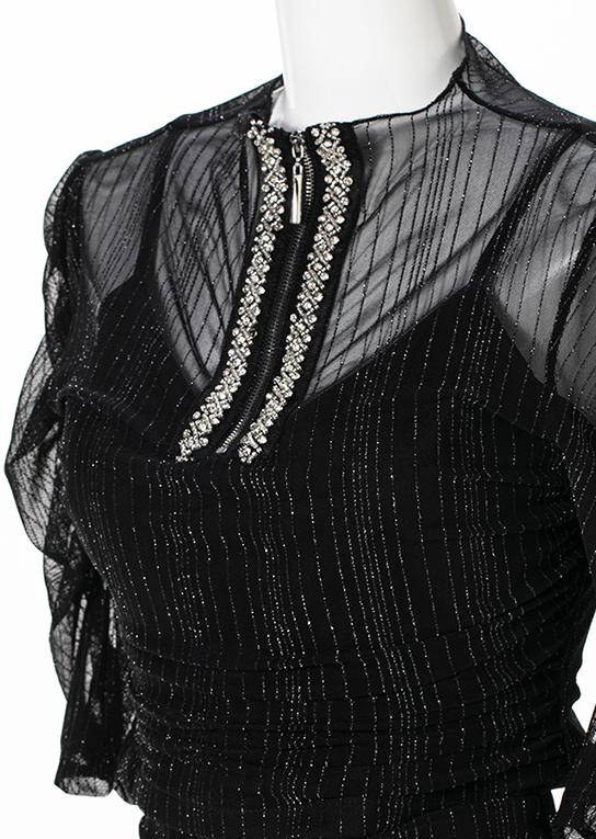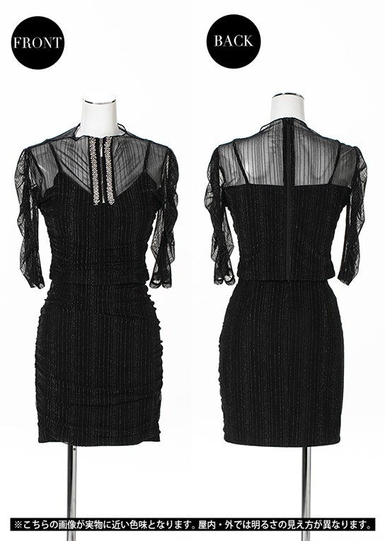フロントのジッパー&ラインビジューが煌めきアクセント。