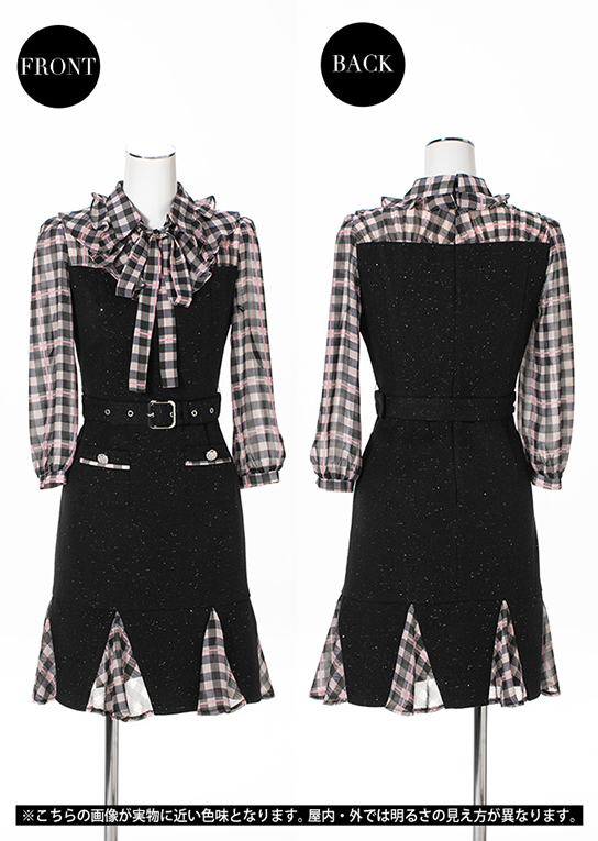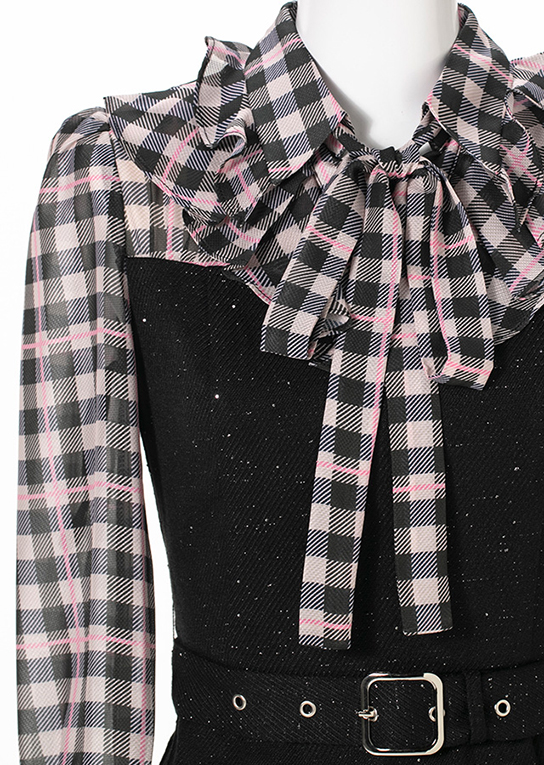 エアリーなボウタイブラウスを合わせたクラシカルなデザイン。