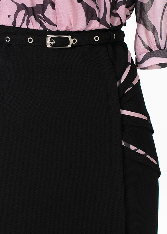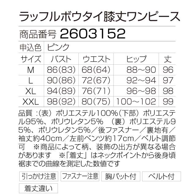 大ぶりのラッフルとボウタイが魅力の華やかなブラウス風デザイン。