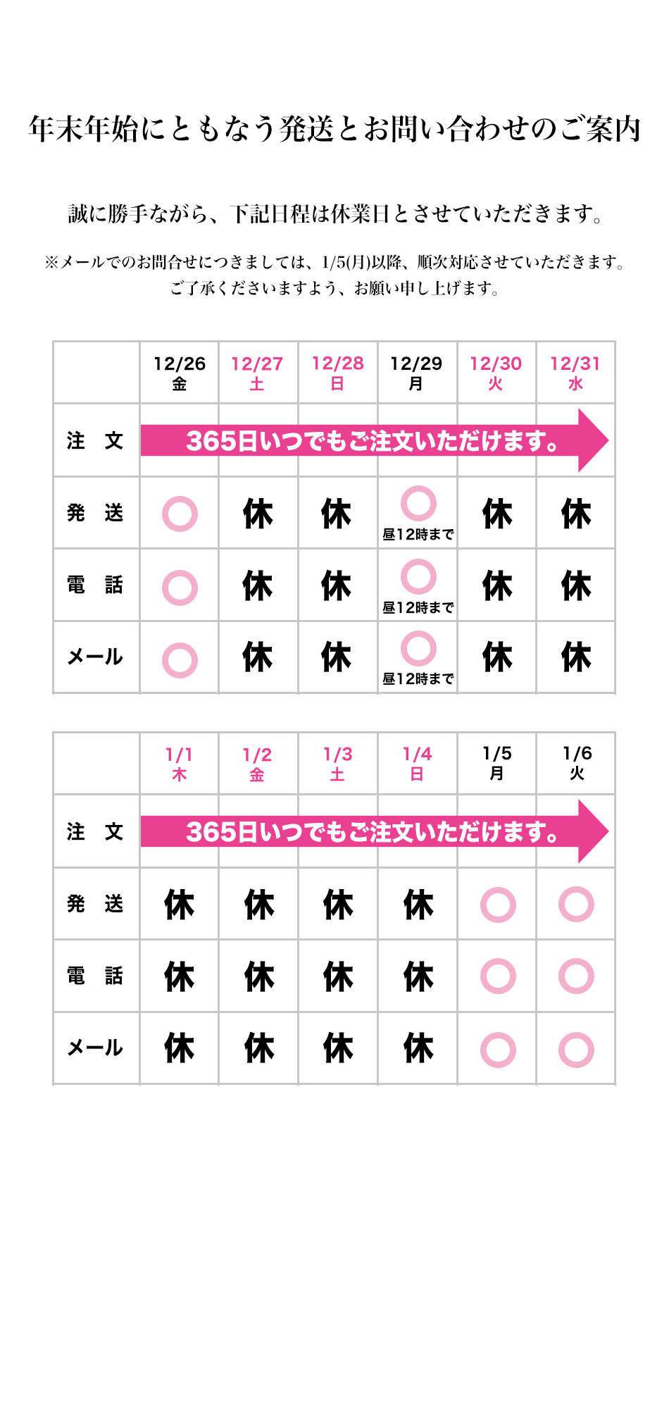 年末年始休業のお知らせ