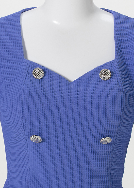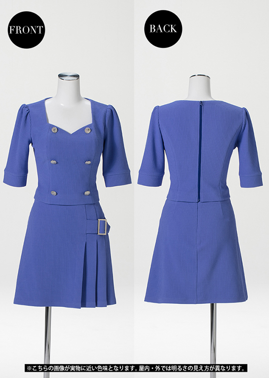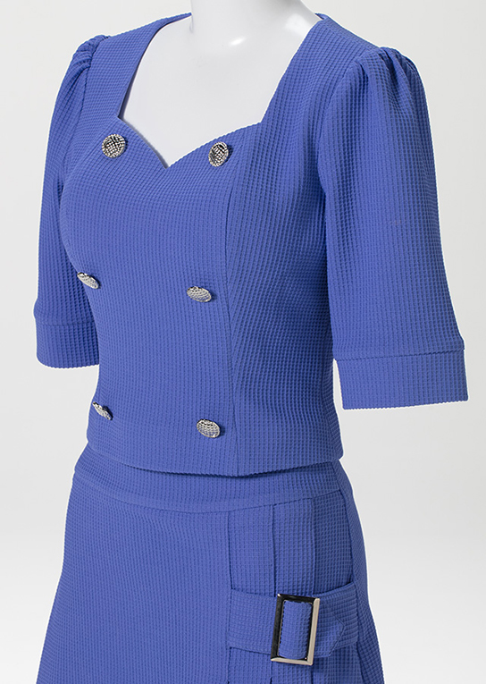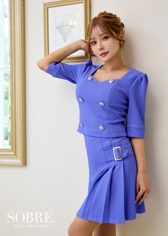 目を惹く鮮やかなパープルブルーのセットアップ。