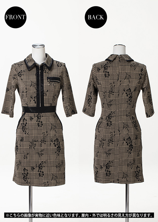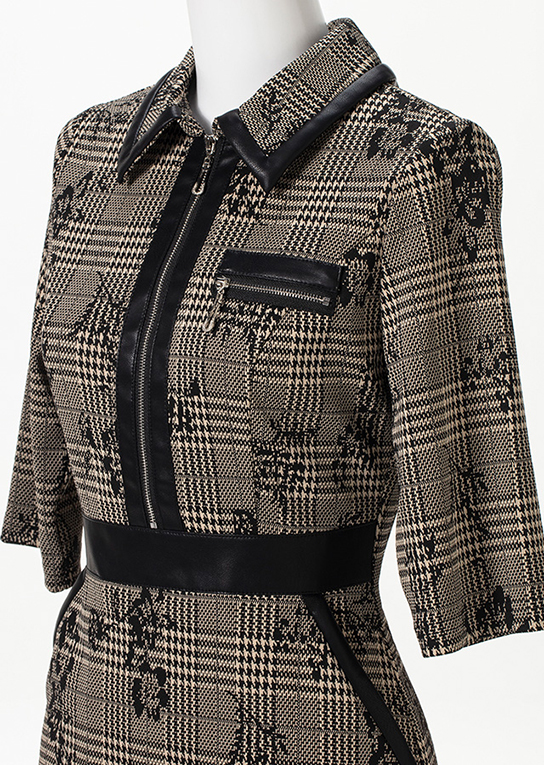 大人カラーのグレンチェック×フラワー柄ニット素材。