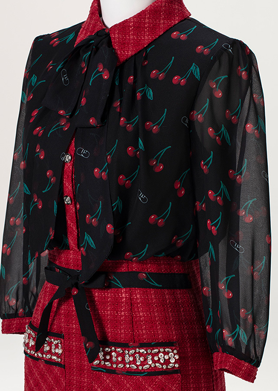 キュートなチェリー柄が鮮度高めなブラウジングワンピース。
