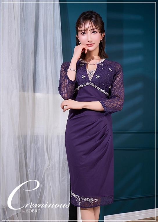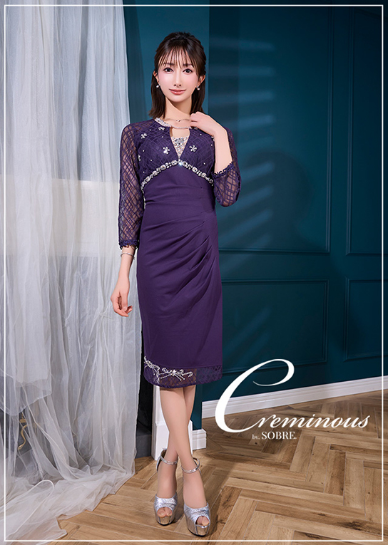 ボディを優しく包むドレープで華やかシルエットをキープ。