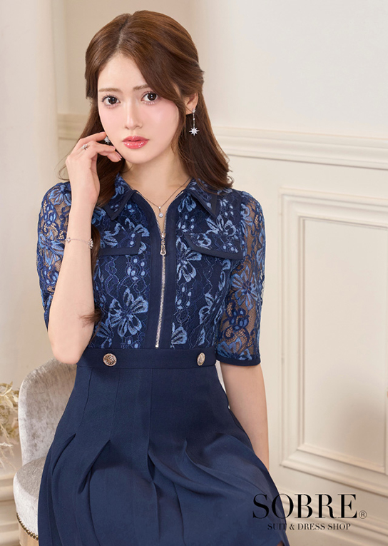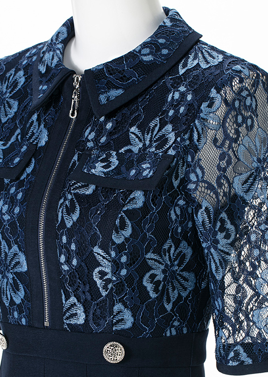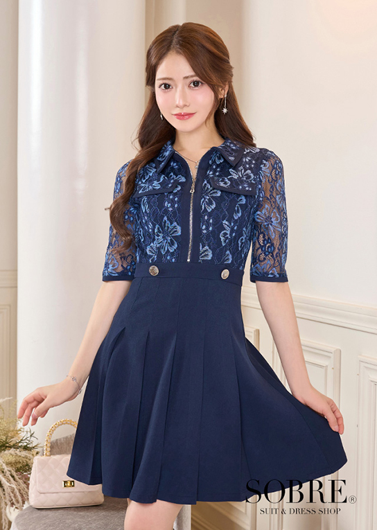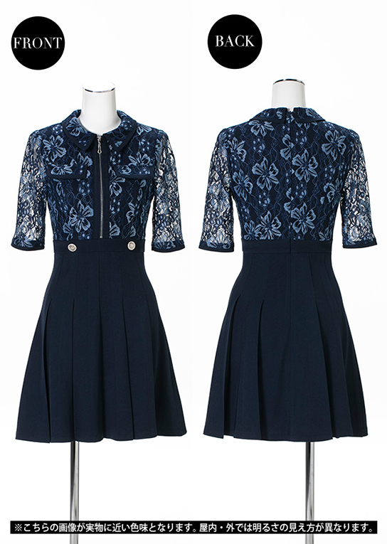 ネイビー×ブルーのフラワーレースが好印象なミニワンピース。