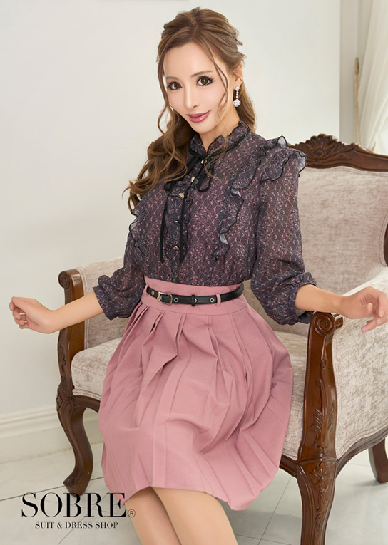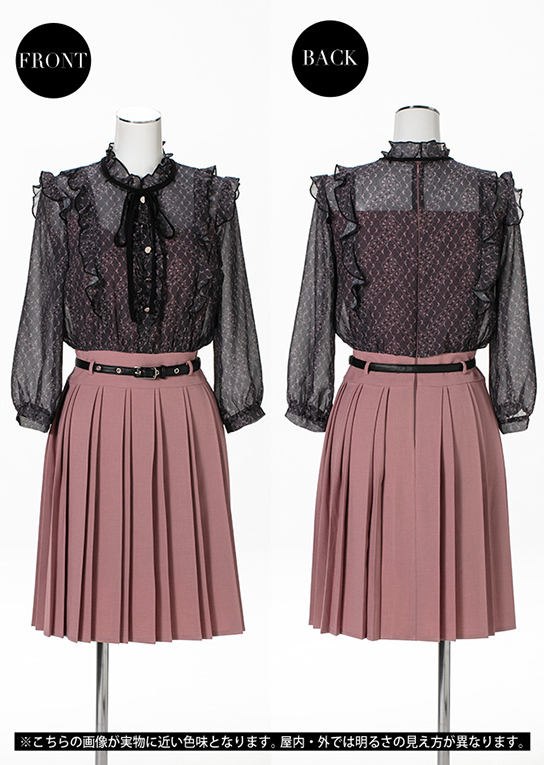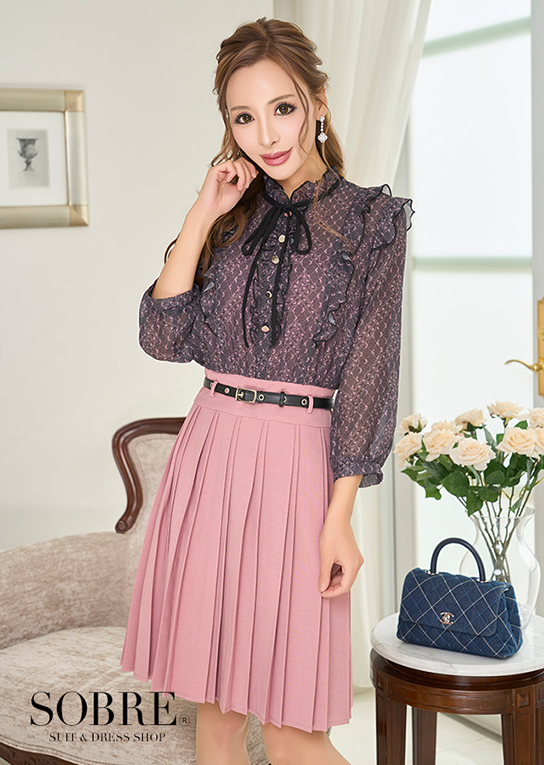 トップスの中はスカートと同じ生地を使い、
