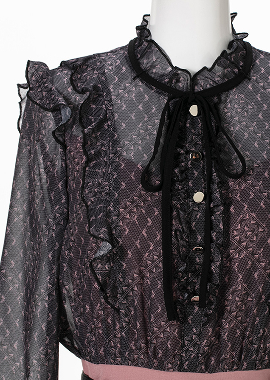 レース柄がプリントされたシアーワッフルシフォン。