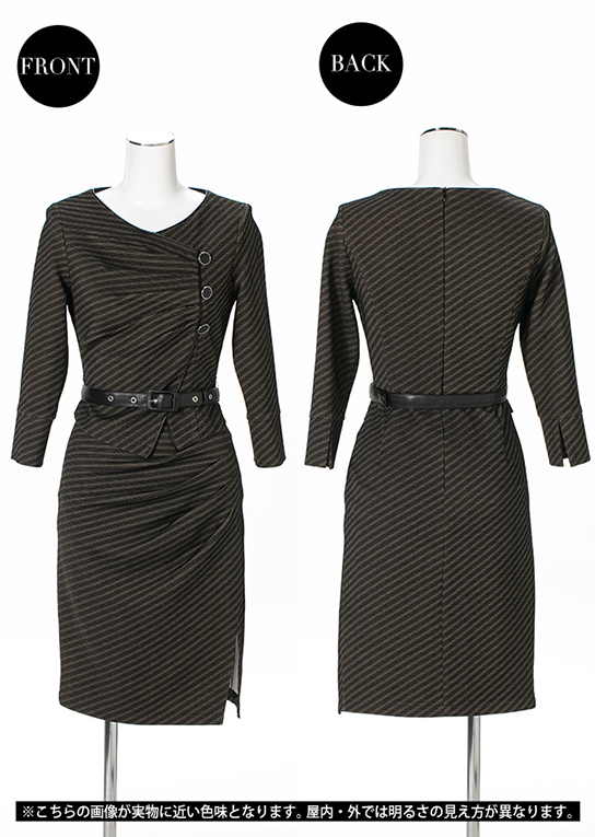 ウエストをきゅっと魅せてくれるフェイクレザーのベルト付き。