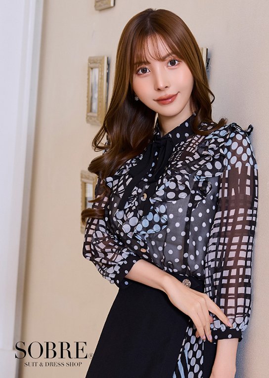 ブルーカラーがポイントになったドットMIXのお洒落なシアーシフォン。