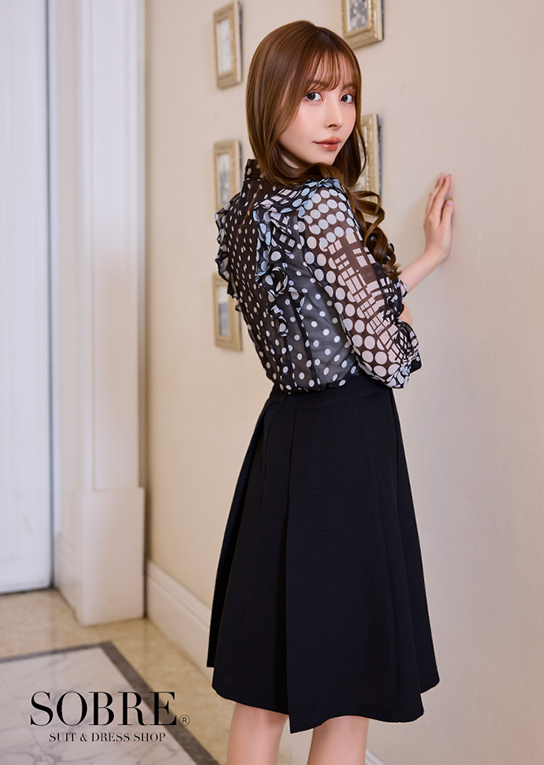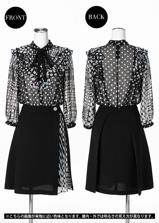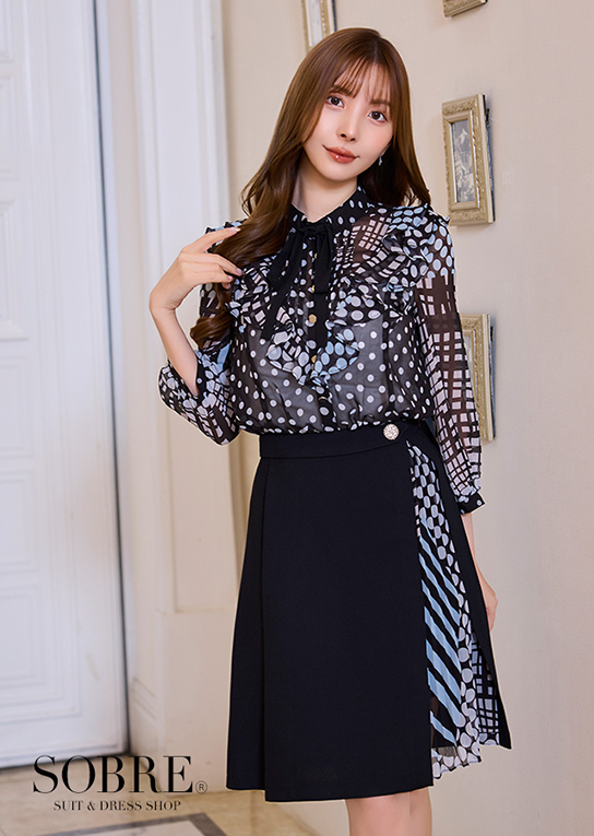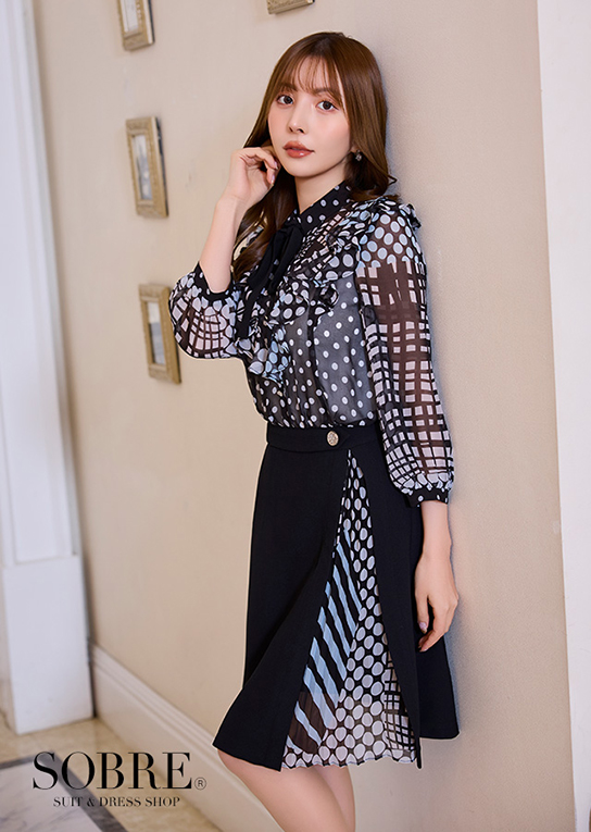 優雅に揺れるラッフルブラウスがドッキングされた上品なワンピース。