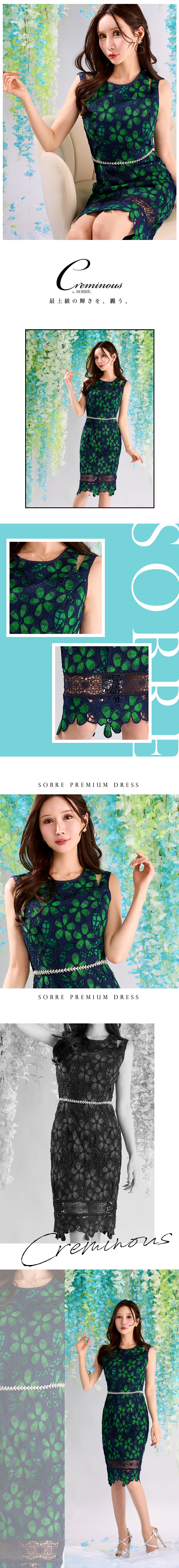 ネイビーベースにグリーンフラワーを刺繍した高級ケミカルレース。