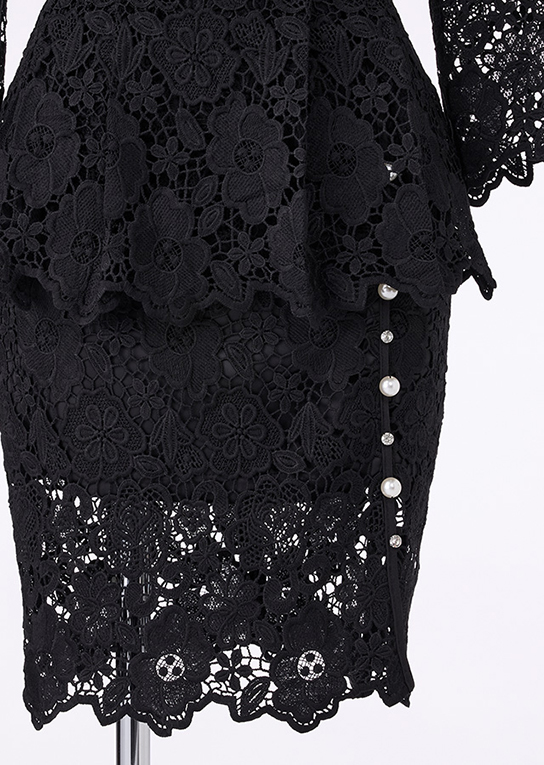 重くなりがちなブラックもレースの透け感で艶やかにアップデート。