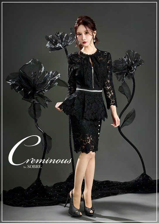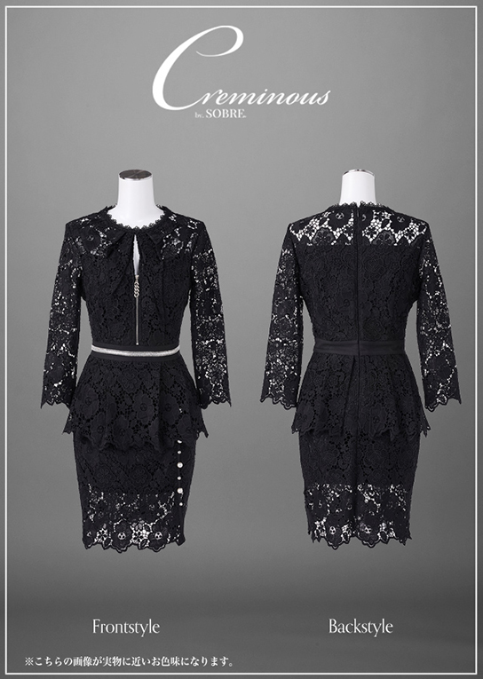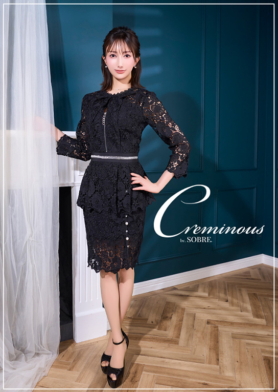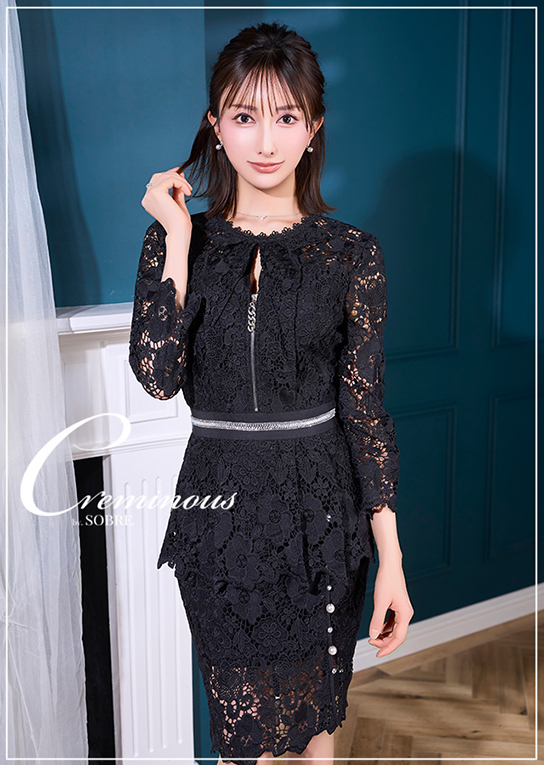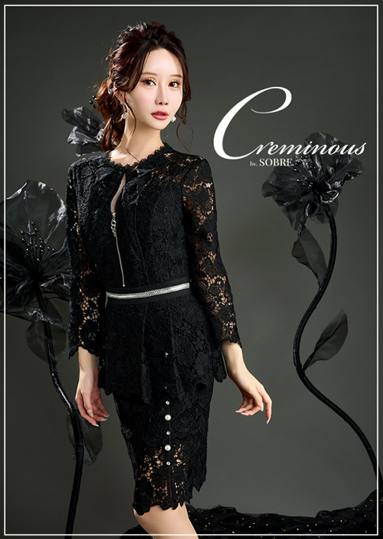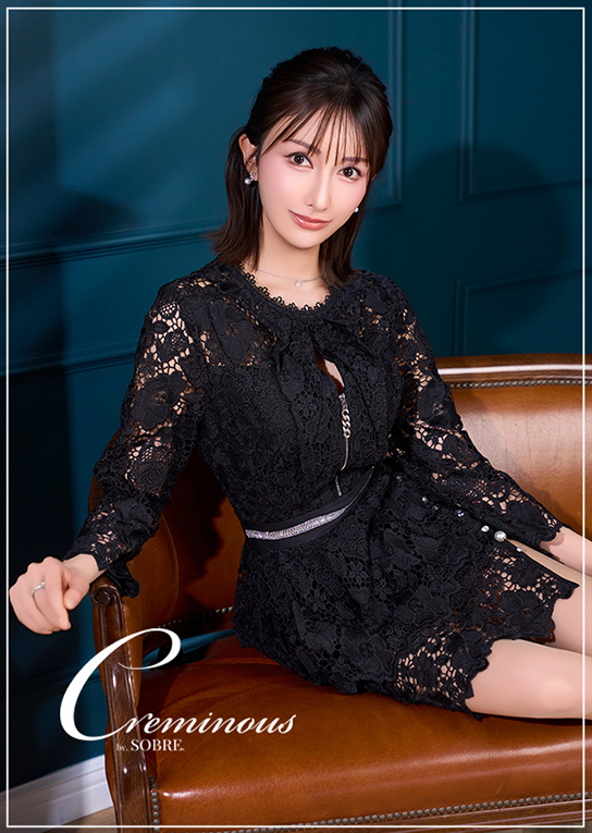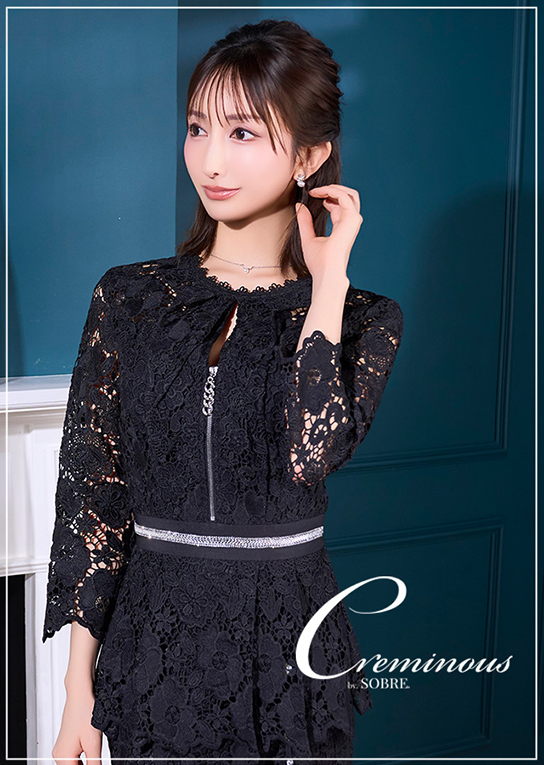 《Creminous》ラッフル刺繍レースジッパーワンピース