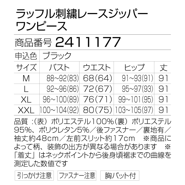 • 《Creminous》ラッフル刺繍レースジッパーワンピース