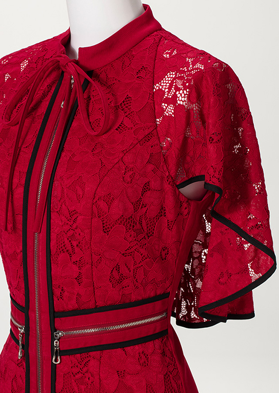 スタンドネックとボウタイでちょっぴりクラシカルな雰囲気に。