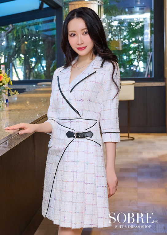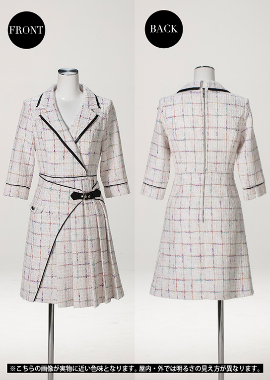 ホワイトベースにカラー糸をMIXさせた華やかなツイード素材。