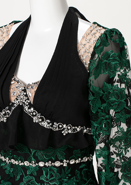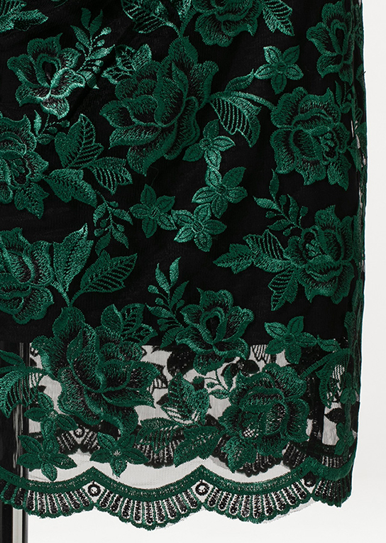 ブラックチュールにグリーンフラワーが映える高級刺繍レース。