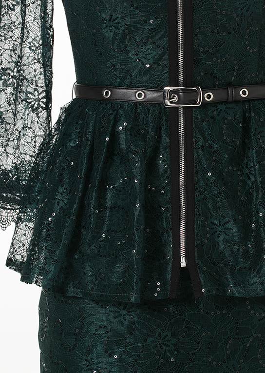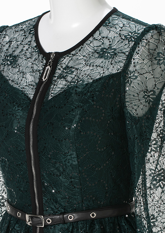 シャイニーなグリーンカラーがリュクスなスパンコール入りチュールレース。