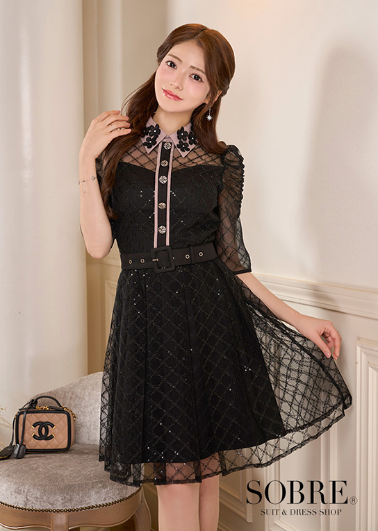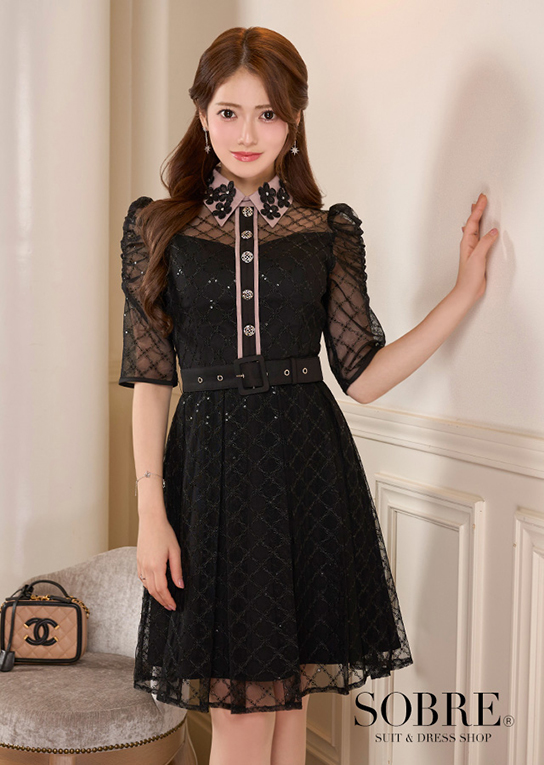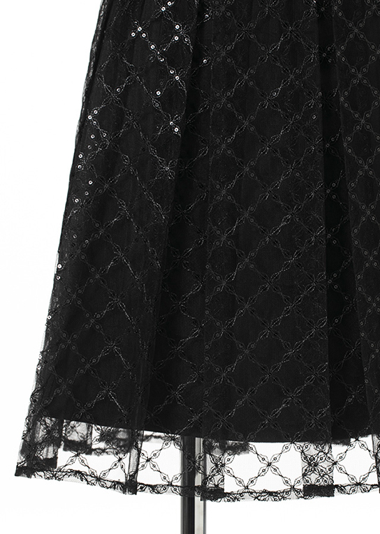 オールブラックでも肌を透かすデザインで軽やかに魅せてくれるのもポイント。