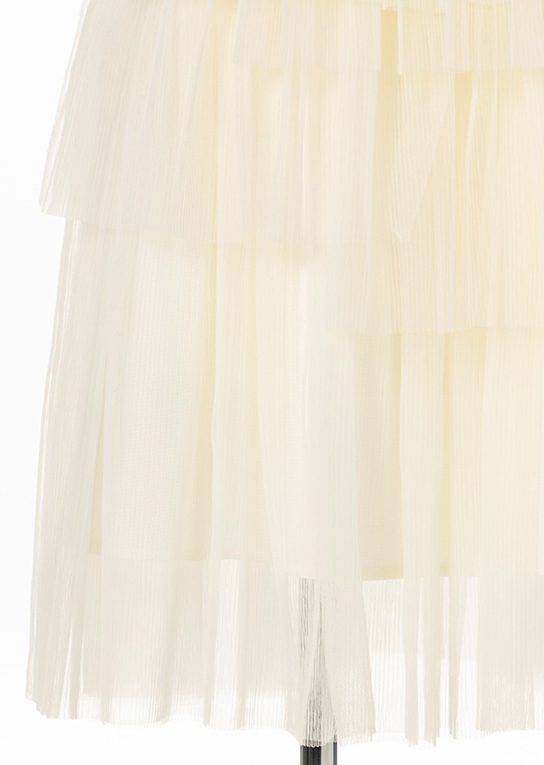 軽やかなプリーツチュールで動きに合わせて揺れるエアリーな仕上がり。