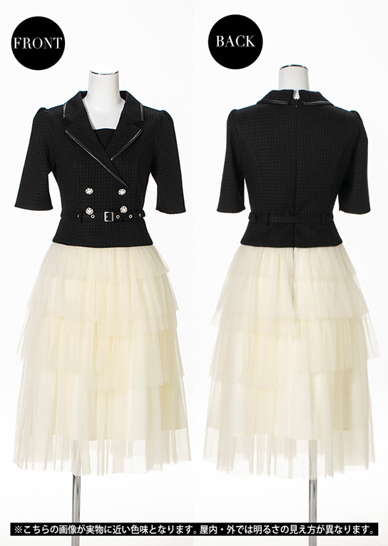 ツイード×チュールに、襟の合皮パイピング、不思議な組み合わせだけど、着たらすごく可愛かったです💗