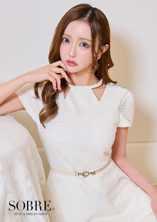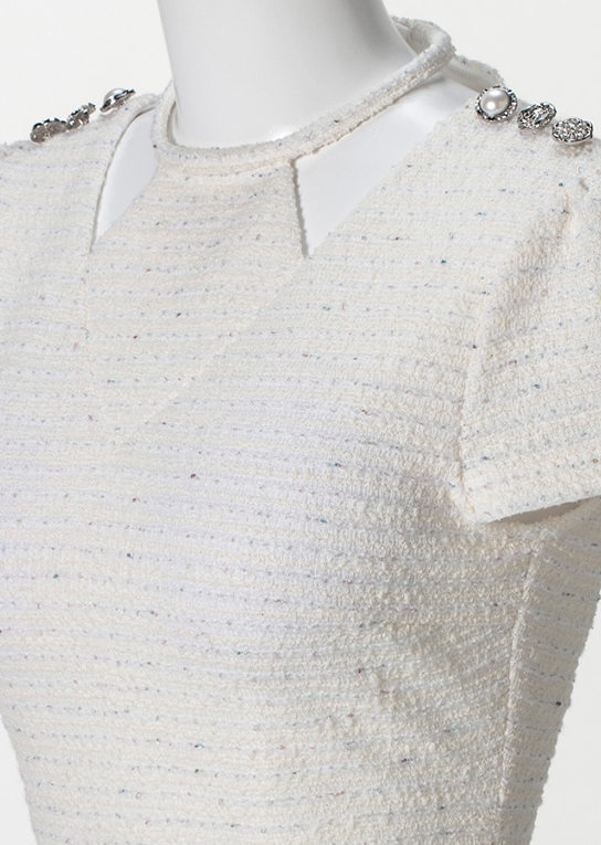 肩の部分にはデザインの違うビジューボタンをトッピング。