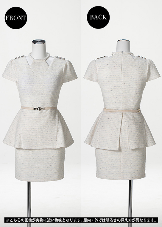 • 【お腹すっきり見え】フレアペプラムカットアウトワンピース