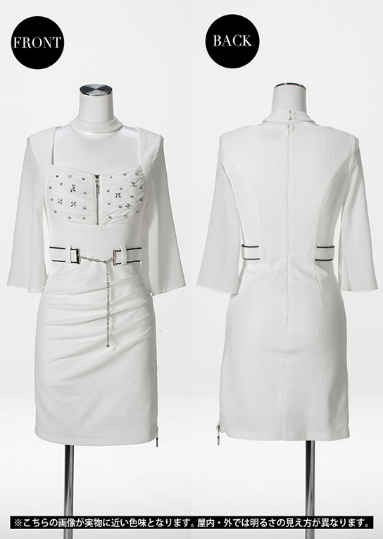 • スタンドカラービジューワンピース