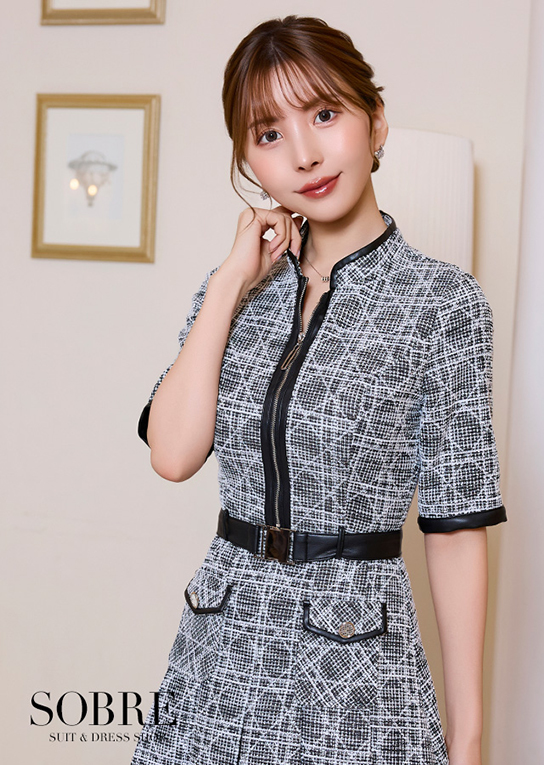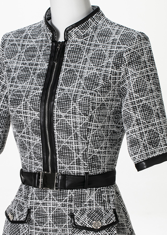 スタンドジッパーでクラシカルな印象を与えるワンピース。